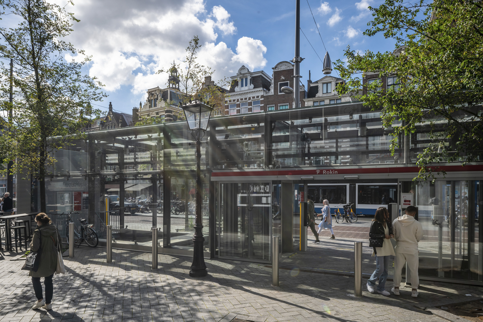 Rokin station is the beating heart of the Rode Loper (Red Carpet), the project of the municipality of Amsterdam for the redevelopment and clean-up of the streets above the metro line. Using the space above the station to house a five-storey underground car and bicycle parking frees up the valuable public space and creates a pleasant environment for the pedestrians.